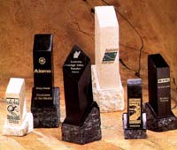That is what Tom Meyer had when he started his company 6 years ago using just half his garage (his wife, Dana, reluctant to forfeit her car space). Since then, Visions has grown to 50 employees, more than making their mark in the corporate gift world. Meyerโs distinct use of marble slate, fossil stone, glass, and crystal has been transformed into a full line of corporate awards, plaques, and eye catching gifts. From exotic book ends, marble cased clocks, to metal masterpieces, Visions offers a full in house production of customized gifts, as well as engravable blanks for anyone to purchase and engrave on their own.