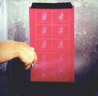 Your film tool is key to the mask making process. It is absolutely critical that you have opaque enough black areas in your design. Holding the vellum up to a light source, on to a light table to see the amount of light passing through the black areas. If too much light penetrates the black areas you will be unable to produce a good mask. We recommend that you do not use a transparency film for your film tool because the toner from copiers or printers do not always transfer to the transparencys well enough. When exposing with the transperency, the ink tends to flake off. We recommend that you use our special U.V. vellum paper or a kodalith film positive. Both of these products will give you optimum results.