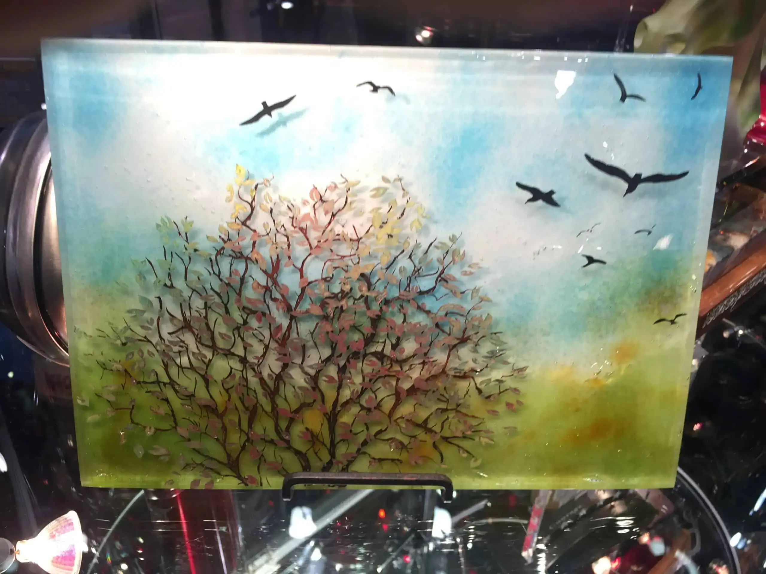 The first day is described above and the second day (in the glass studio) will be building your three to four layered collage pieces, damming and putting in the big kiln to fire. The studio day will also include “fusing deep” firing schedules and a hands on demonstration of diamond saw cutting and wet grinding “cold-working” techniques to make beautiful finished edges. (they will be shipped to you via priority mail when cooled)