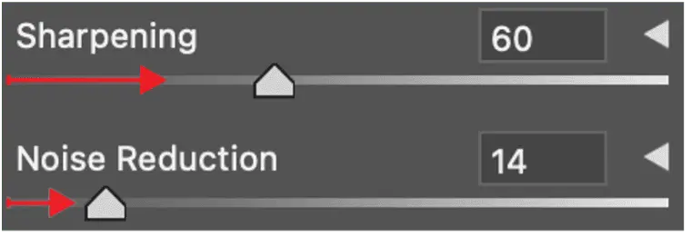 Sharpening – I move this setting slightly further to the right Noise Reduction – I try not to move to far to the right