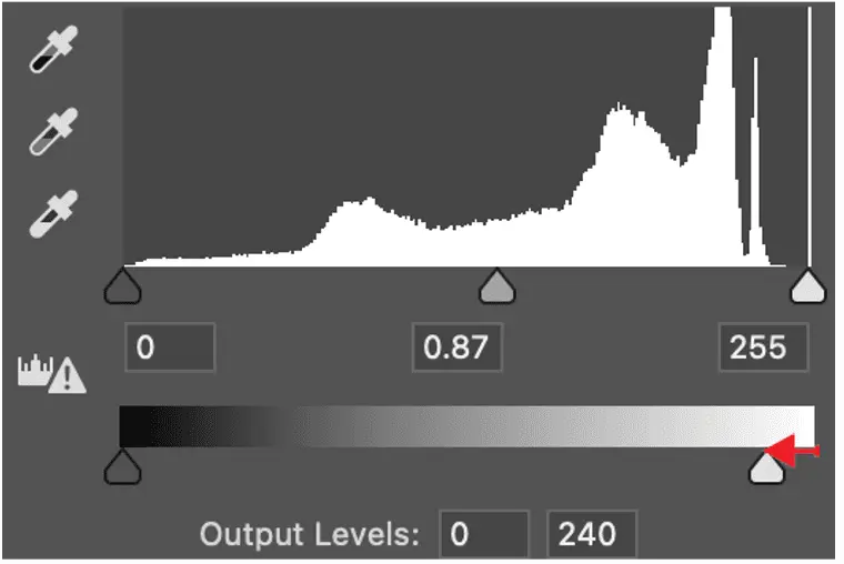 Step 7: Add levels and move the white slider over to the left a small amount.