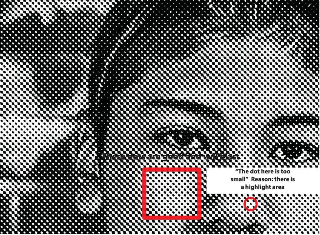 Step 9: Command “I” (Invert) / Zoom in / Check the dot pattern to make sure the dots are big enough. White areas are more important. If you need to adjust anything Command Z (Undo) until you see all of the settings that you have made previously.