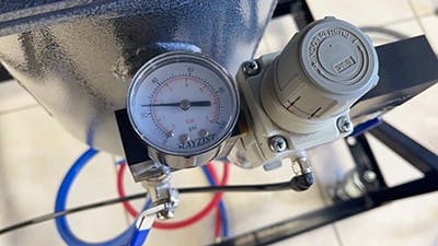 I reduced my blasting pressure to 20 psi (FIGURE 16) and extended my nozzle distance to 8 in. from the glass. The reduced blasting pressure and increased nozzle distance allowed me to frost the letters of the name, creating a subtle change.