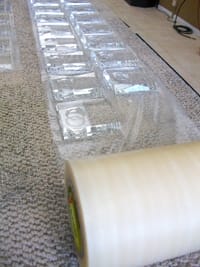 You will need a carpeted work table to protect your crystal while you are prepping it. The soft fibers of the carpet will decrease the risk of scratching during preparation. Also, be sure to keep the sandcarved items separate from the pieces you are prepping. The sandcarved items will bring abrasive residue into your work area and increase the risk of scratching.