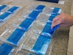 - Remove the clear carrier on all of the photomasks and cover the front of each piece with blasting tape.