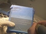 - Place the rinsed crystal in the second sink and remove the photomask.