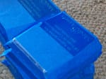 - Apply four small strips of blasting tape to ensure no abrasive will work its way through the edge of the transfer tape.