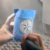 - Carve the photomask. Once your photomask has been applied to your surface, you are ready to begin Sandcarving.