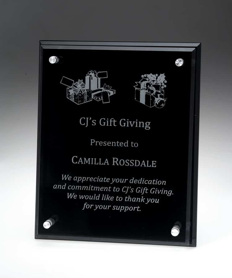 Black Glass Plaque w/ Glass, Jade Glass Award