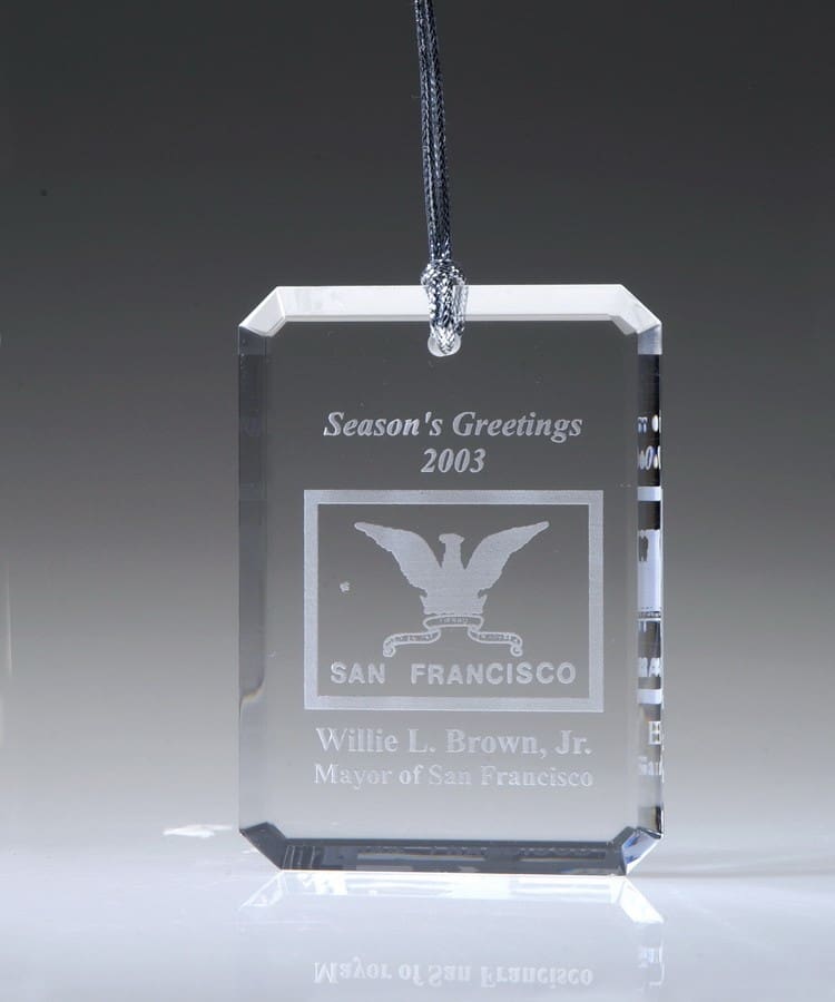 Christmas Ornament, Rectangle, 3"H Optic Crystal