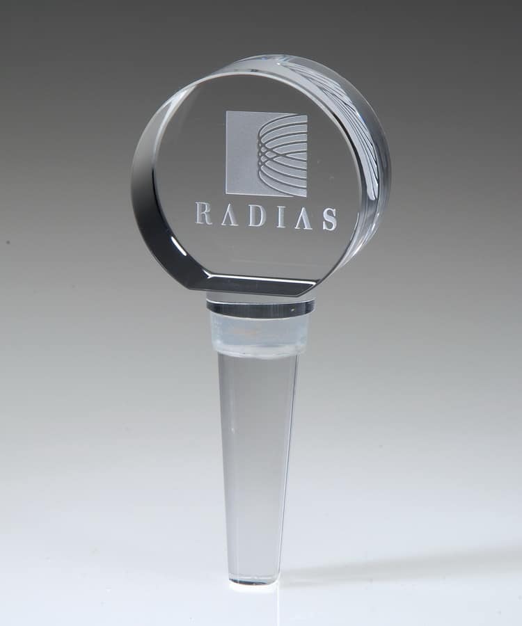Wine Bottle Stopper, Round, 4"H Optic Crystal