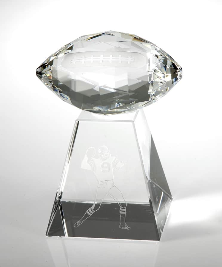 Faceted Football W/Tall Base, Optic Crystal Trophy