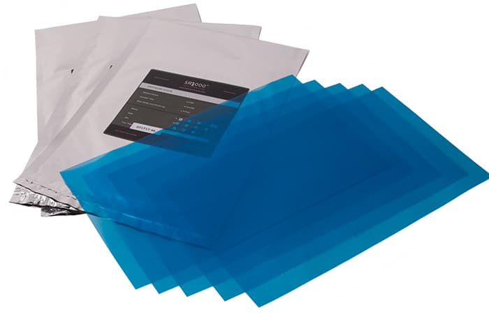 SR2000™ is a UV light sensitive photoresist film. Sunlight will expose the SR2000™ film. SR2000™ can be handled under fluorescent lighting for a limited time or under yellow lighting with no limitations. SR2000™ is a water-soluble film. SR2000™ has a one year expiration date from the time of purchase.