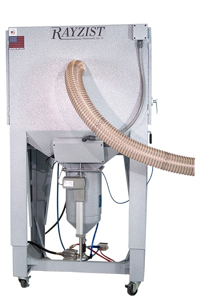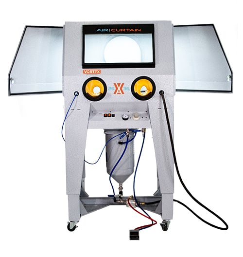 The 2636VXA Sandcarving System has a modular design allowing configuration to your specific needs. Our production setup features two 2636VXA Sandcarving Systems with one central filtration unit. Optionally you can start with a single 2636VXA Sandcarving System and a central filtration unit, and then add the second system when production demands.