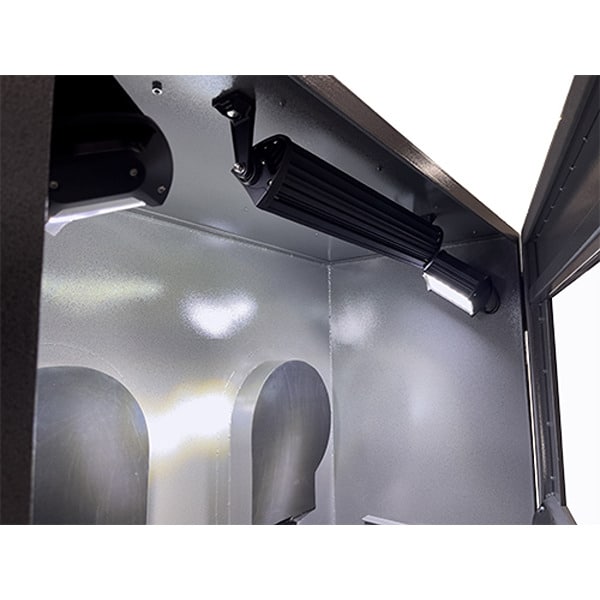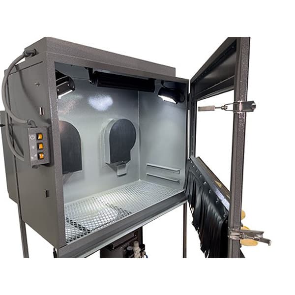 The inside blasting area measures 48.5"W x 24"D x 40"H