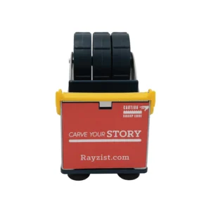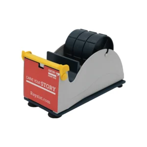 Steel Desk Top Tape Dispenser is an industrial grade steel desk tape dispenser. The Tape Dispenser features a durable and rust-proof serrated blade. Includes a safety guard over the serrated blade. The Tape Dispenser will accommodate a 2” roll and a 1” roll of tape. The base is equipped with 4 suction cups to secure dispenser on your table. The Tape Dispenser makes tape easily accessible for tapping projects prior to sandcarving.
