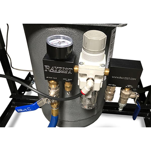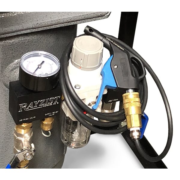 Blow Off Air Gun is placed inside sandcarving cabinet to remove any abrasive on items. Air Gun is equipped with adaptor that connects to pressure pot regulator.